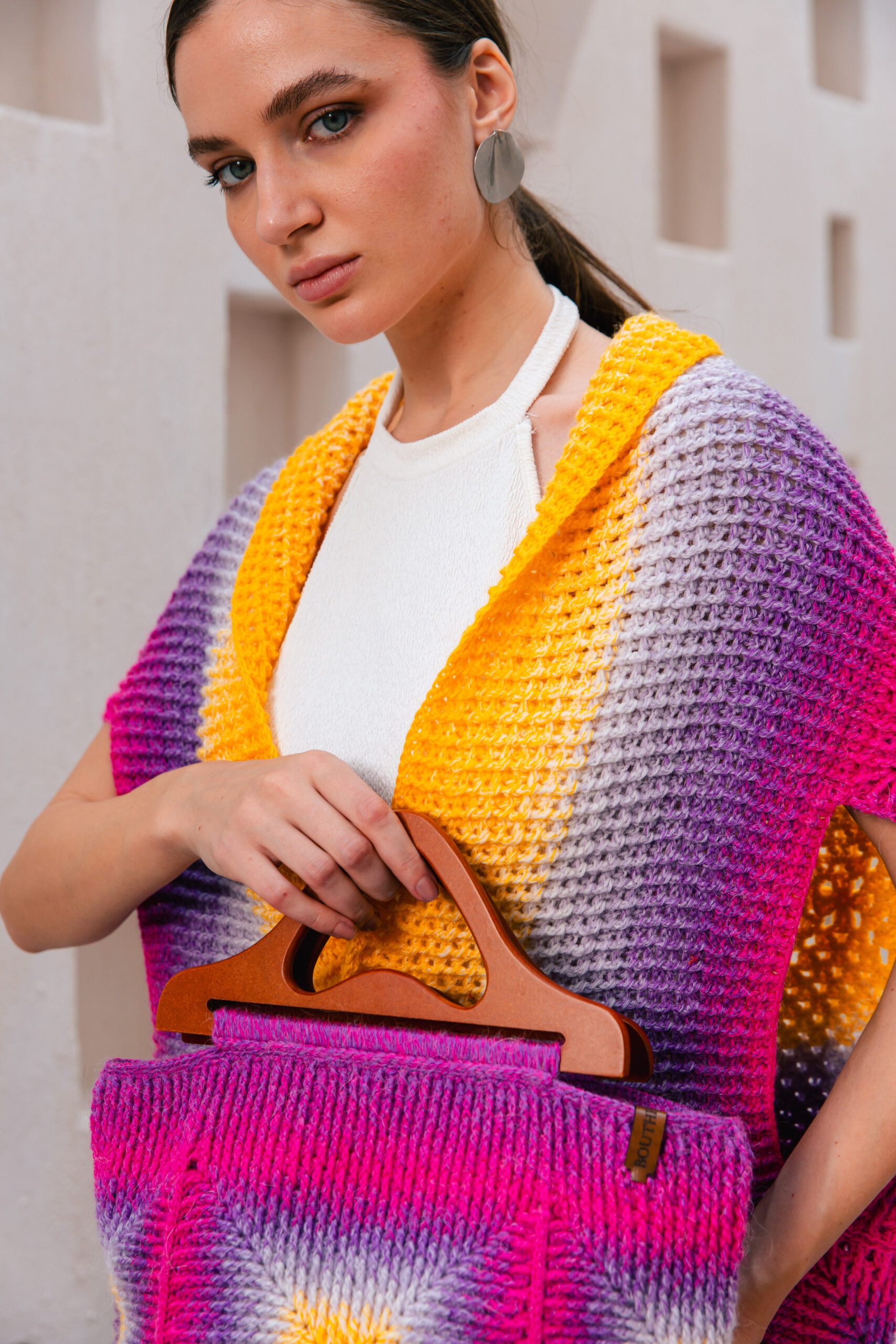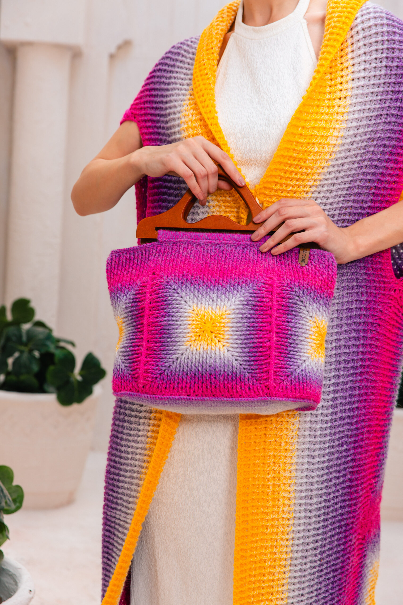 • Atlantic handbag with wood hand.
