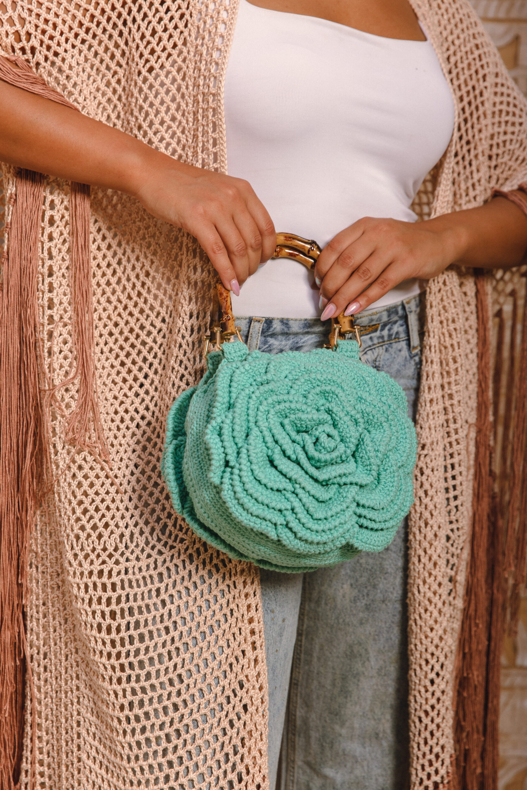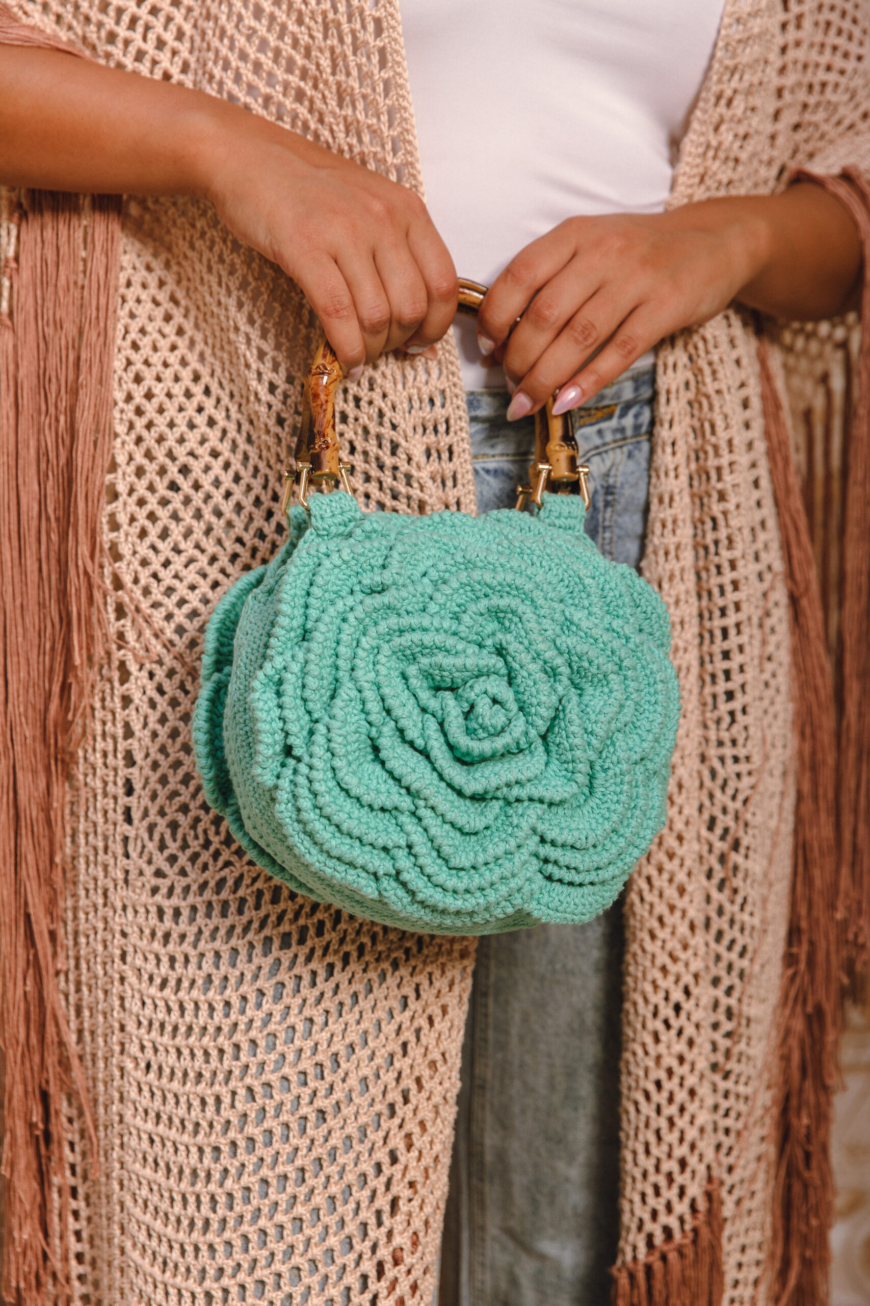 • A soft, artisanal accessory with a bold, feminine touch.